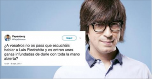 Por desgracia y muy a nuestro pesar los insultos y faltas de respecto en la redes sociales esta al orden del día. Esta vez le ha tocado al gran cómico y mago Luis Piedrahita sufrir este ataque por Twitter. Este tuitero le escribió lo siguiente: “¿A vosotros no os pasa que escucháis hablar a Luis … Sigue leyendo Un Tuitero tenia ganas de darle «Con toda la mano abierta» a Luis Piedrahita. No te pierdas la respuesta tan elegante